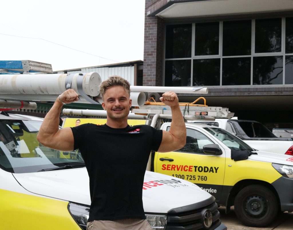 Joey: Carrying ladders, cable reels and switchboards? Every day is arm day.